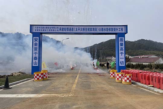 2月22日公司中標承建的皖鄂通道(太平大橋至祝家灣段)公路水毀修復提升工程項目開工,太平畈鄉(xiāng)鄉(xiāng)長汪俏、人大主席吳園忠參加開工典禮。